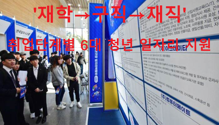 정부가 청년 일자리를 보다 확대하고자 '재학→구직→재직' 취업단계별 6대 청년 일자리 사업을 선정해 집중관리한다고 합니다.