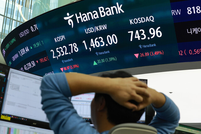원-달러 환율이 급등하면서 국내 증시의 외국인 이탈을 더 부추겼습니다. 이날 서울 외환시장에서 원-달러 환율은 전날보다 20.4원 급등한 1463.4원에 주간 거래를 마쳤습니다.