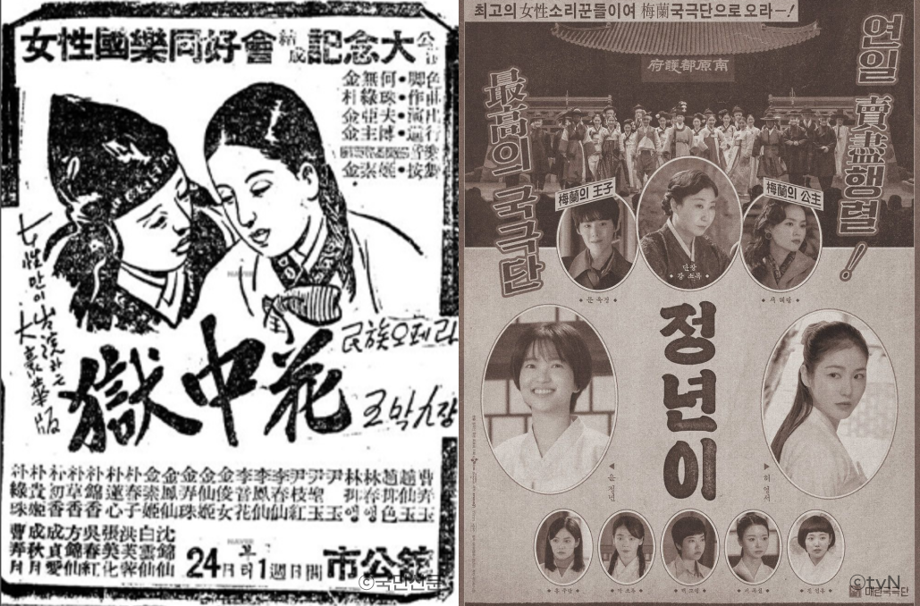 1948년 여성 국악인들이 모여 선보인 '옥중화(獄中花)'를 계기로 시작된 여성국극은 한국전쟁 직후 전성기를 맞았습니다. 이 시기에 활동했던 배우들을 1세대 여성 국극 인이라 부르고 있습니다.
