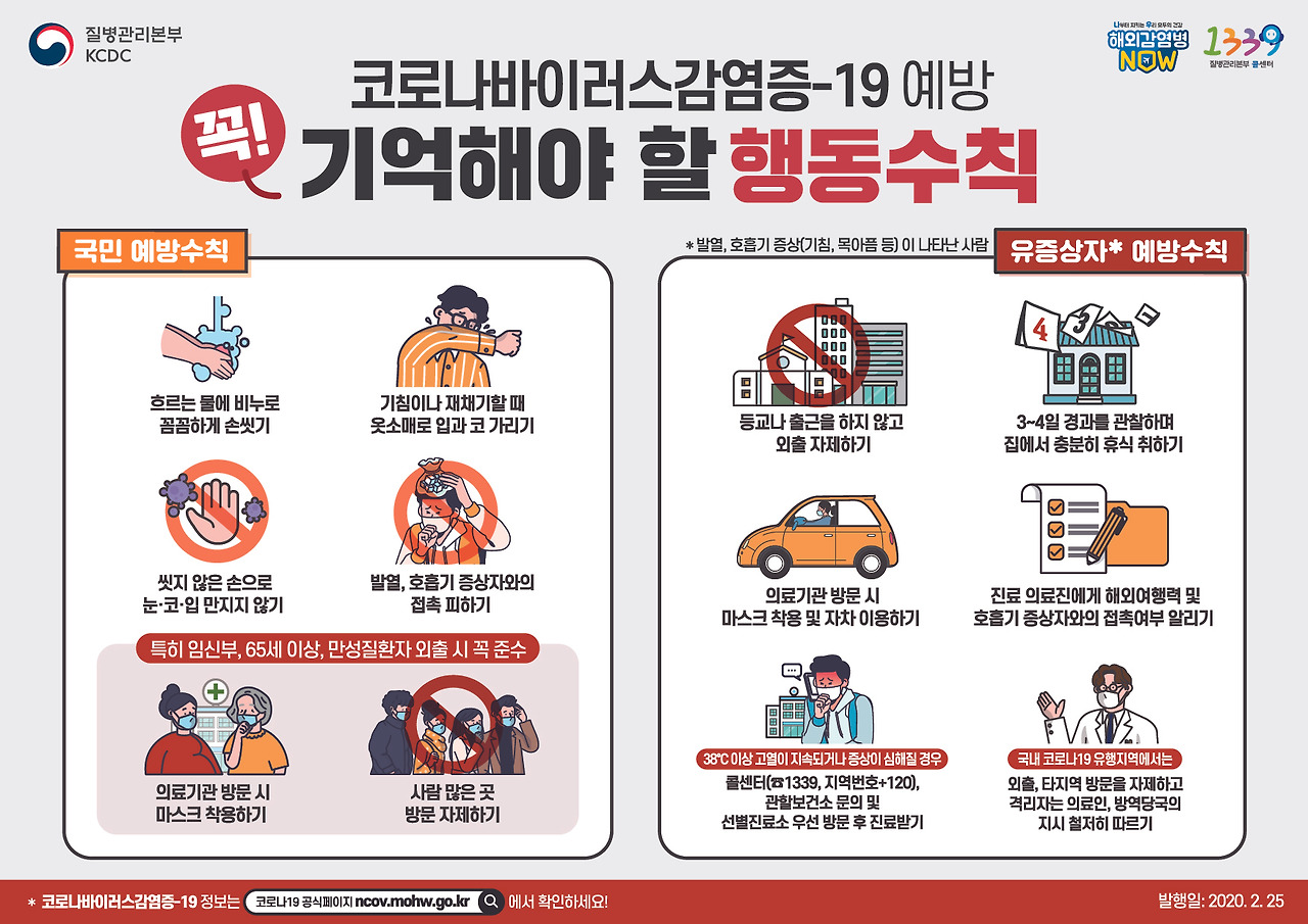 외출 후에는 반드시 손을 씻고 재채기를 할 때는 입을 가리고, 다른 사람의 식기 등을 만질 때는 조심하는 등의 기본적인 위생 수칙은 지켜야 하는 것입니다.