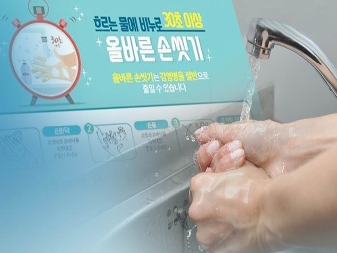 - 흐르는 물에 비누로 30초 이상 손 씻기