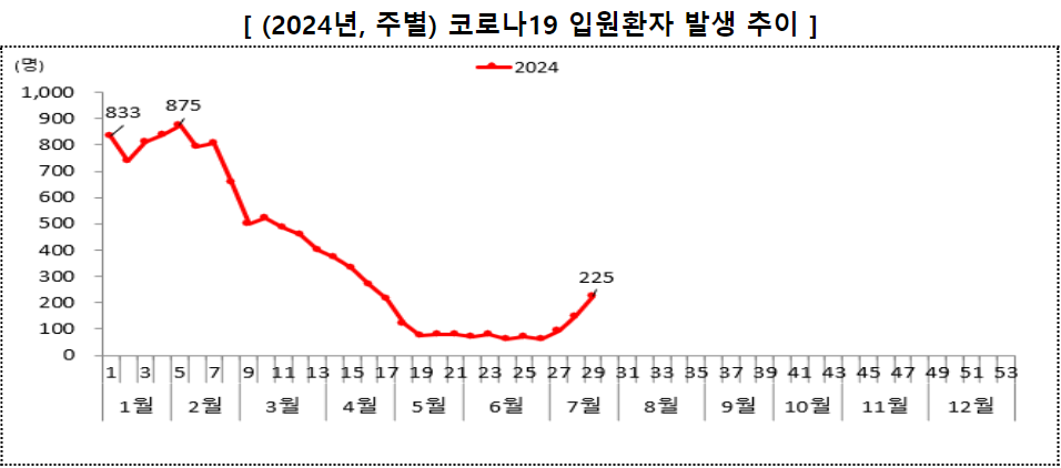▶ 최근 4주 주간 입원환자 수 : (6.4주) 63명 → (7.1주) 91명 → (7.2주) 145명 → (7.3주) 225명\