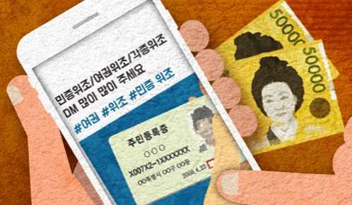 * SNS에 '민증위조', '민증제', '위조민증 판매', '모바일신분증 제작' 등의 판매 글을 올린 후, 메신저로 연락을 주고받는 것으로 보임