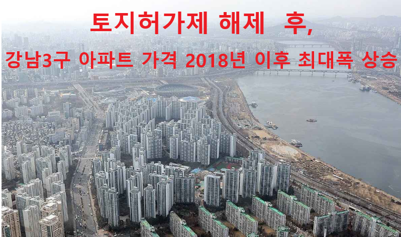토지 허가제가 풀리자 서울 강남을 중심으로 집값이 어느 때보다 가파르게 오르고 있습니다. 강남 3구(강남・서초・송파)의 아파트 매매가격이 2018년 이후 최대 상승 폭을 기록했다는 말이 나왔을 정도입니다.