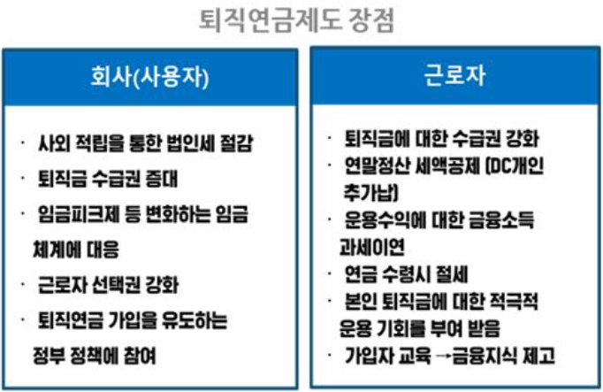▲ 근로자가 재직 중에 자유롭게 가입하거나 퇴직 시 받은 퇴직급여를 계속해서 적립하고 운용할 수 있는 퇴직연금제도