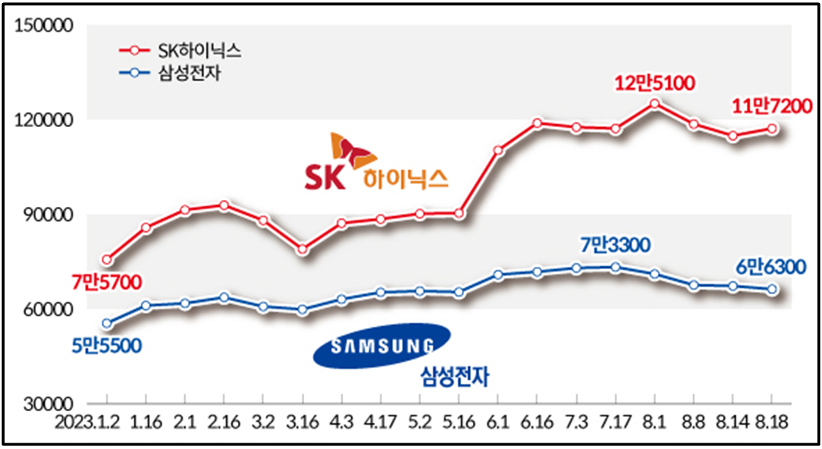 2024년 1분기 동안 'SK하이닉스'의 주가는 상당한 상승세를 보였습니다. 2024년 1분기 실적은 매출 12.4조 원, 영업이익 2.8조 원을 기록했습니다. 이는 전년 대비 큰 폭의 증가로, 특히 AI 및 고성능 메모리 제품의 수요 증가가 주요 요인으로 작용했습니다.