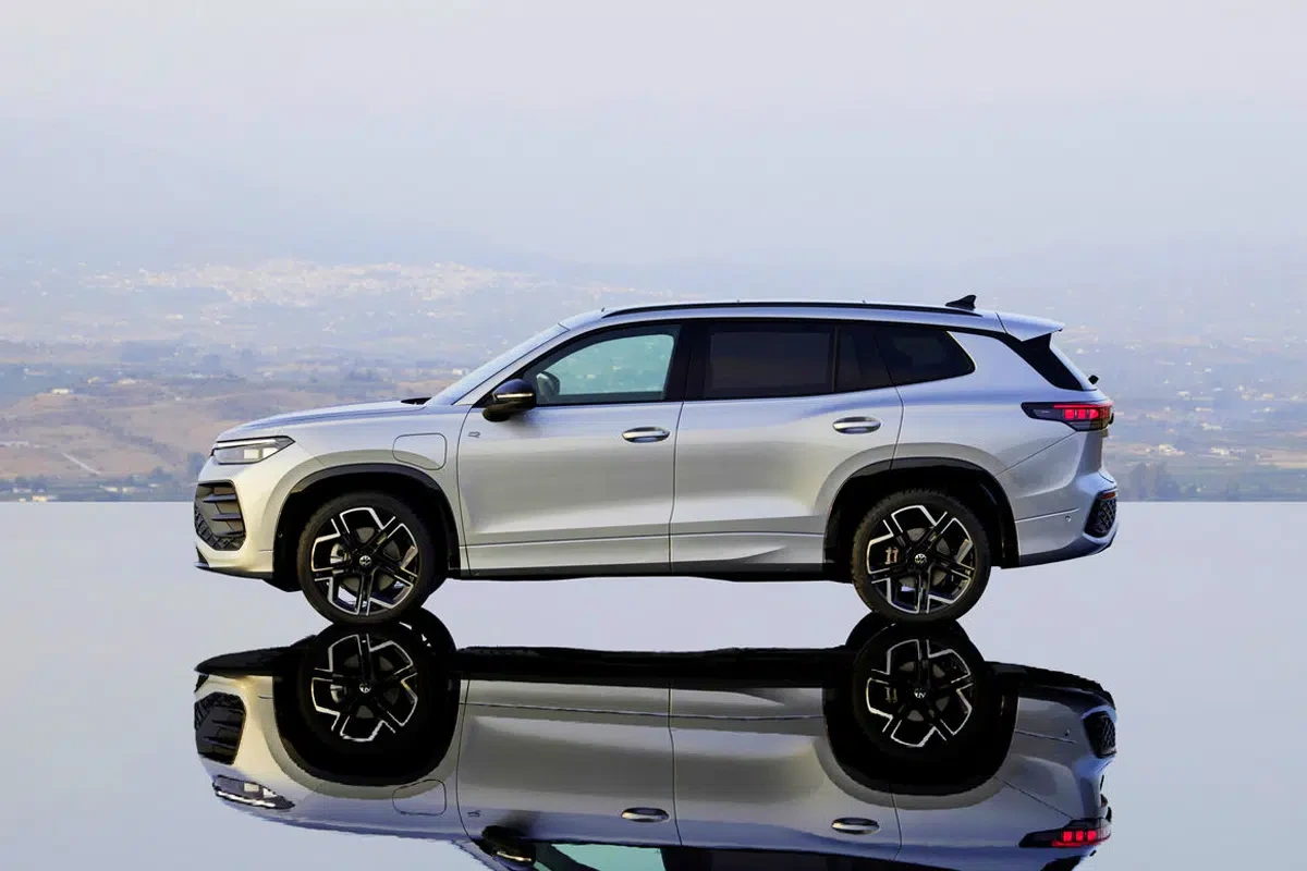 측면의 간결한 캐릭터 라인은 앞바퀴 아치에서 시작해 뒷문 손잡이를 지나 테일라이트까지 이어져, 볼륨감이 인상적입니다. 기존 티구안 올스페이스 대비 훨씬 더 세련된 모습입니다.