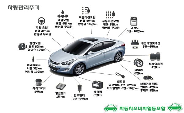 * 엔진 오일교환, 브레이크 패드 교체, 타이어 교체 등을 시기에 맞게 수행