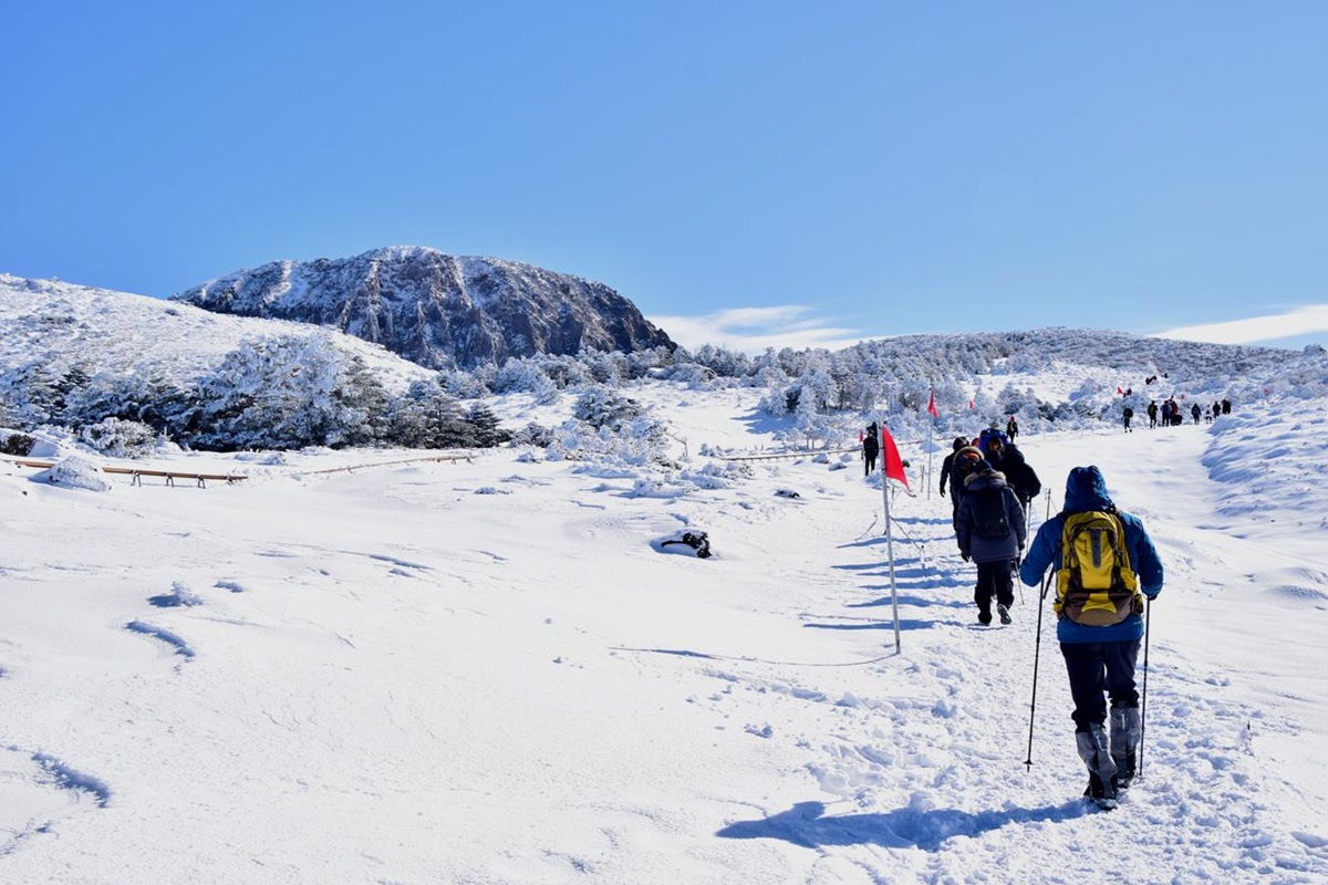 * 겨울 : 눈 덮인 한라산의 설경을 감상하며 스노우 트레킹을 즐길 수 있습니다.