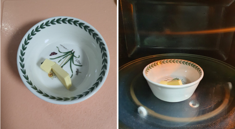- 버터 녹이기 : 버터를 전자레인지에 녹여서 충분히 식혀줍니다.