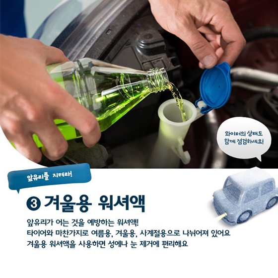 - 겨울용 워셔액을 사용하면 성에나 눈 제거에 편리