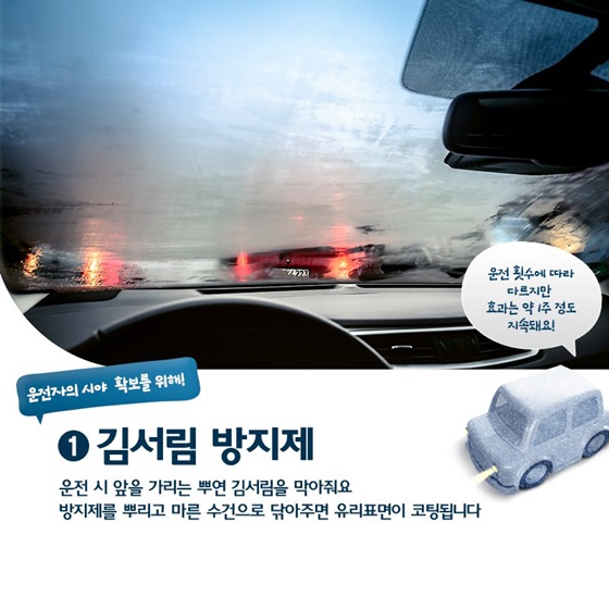 ◆ 운전자의 시야 확보를 위한 김 서림 방지제