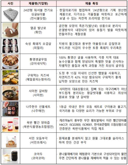- 수요가 많아진 선물, 방한용품, 먹거리 등을 중심으로 중소기업‧소상공인 제품을 최대 50% 할인 판매
