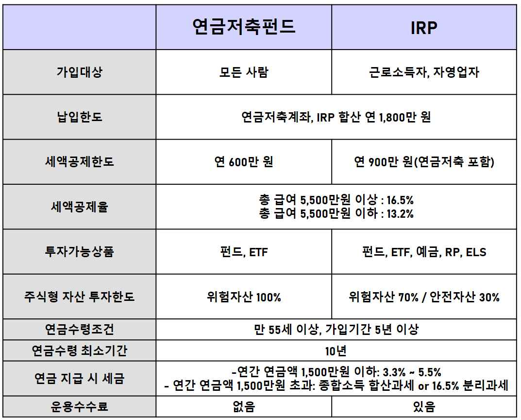 ▶ 연금저축과 IRP의 차이