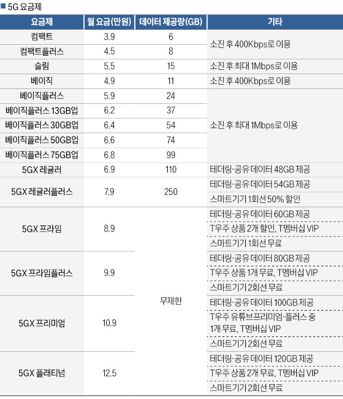 ◆ 통신 3사, 올해 5G보다 비싼 LTE 요금제 신규 가입 중단키로, 내년부터 통합요금제 신설