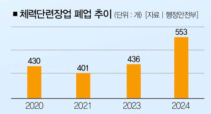 통계는 어떨까요? 실제로 폐업하는 헬스장은 계속 증가하는 추세입니다. 행정안전부에 따르면 헬스장·요가원·필라테스 학원 등으로 구성된 '체력단련장업'의 지난해 폐업은 전년(436개)보다 26.8% 늘어난 553개를 기록했습니다. 이는 코로나19로 영업 제한이 빈번했던 2020년(430개), 2021년(401개)보다도 많은 수치입니다.