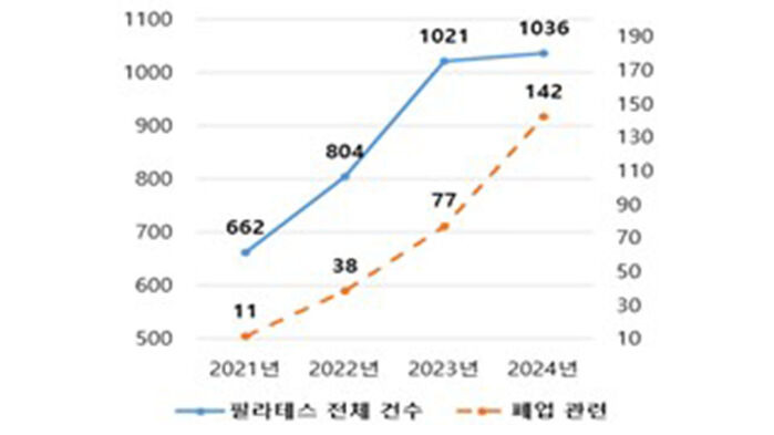 연도별로 보면 2021년 662건, 2022년 804건, 2023년 1,021건, 지난해 1천36건 등으로 매년 증가 추세입니다. 올해 들어선 1월 접수건만 112건으로 지난해 같은 기간(99건)에 비해 13.1% 늘었습니다.