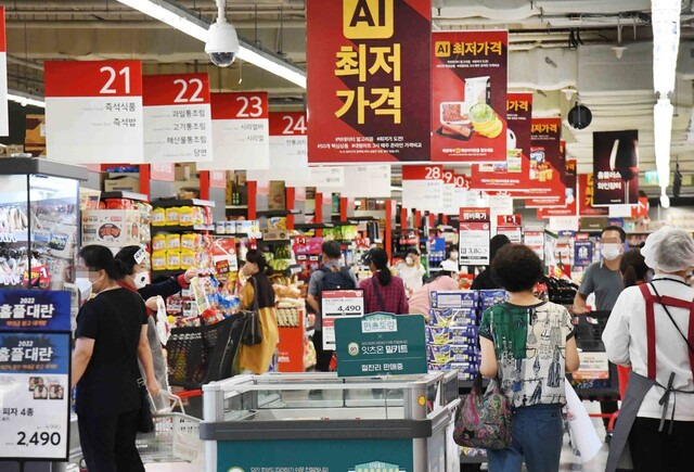 고물가와 경기침체가 길어지면서 사람들이 소비를 확 줄인 데다, 대형마트 영업시간 규제 등이 영향을 줬다는 분석도 나오고 있습니다.