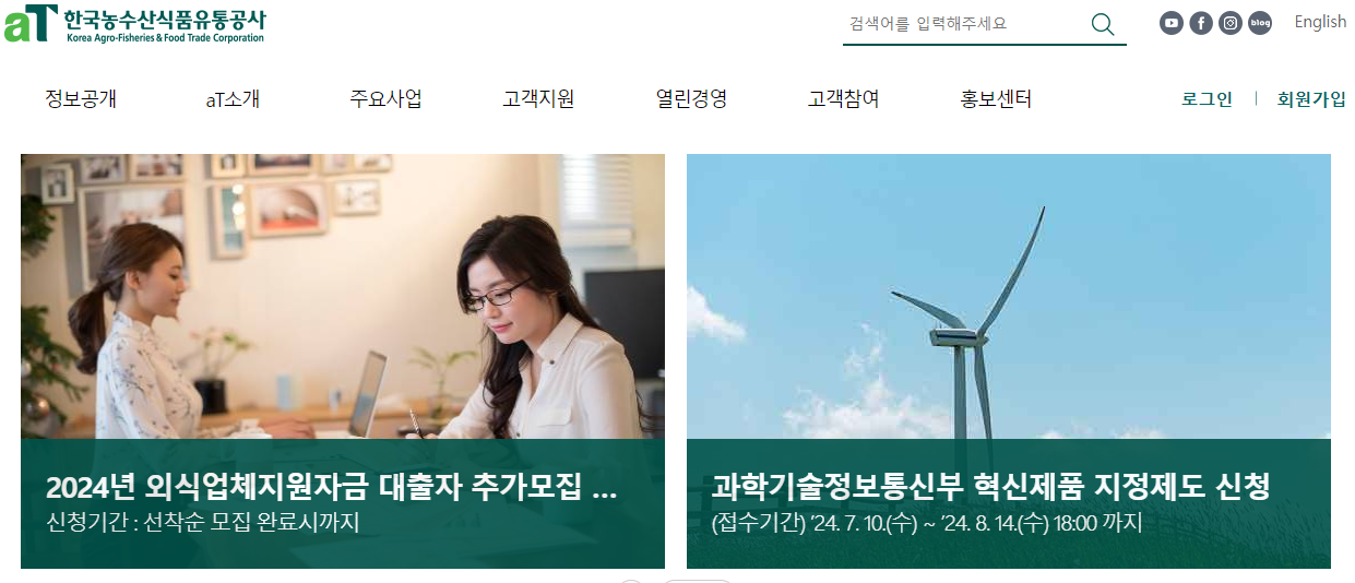 ☛ 한국농수산식품유통공사 바로가기 https://www.at.or.kr/home/apko000000/index.action