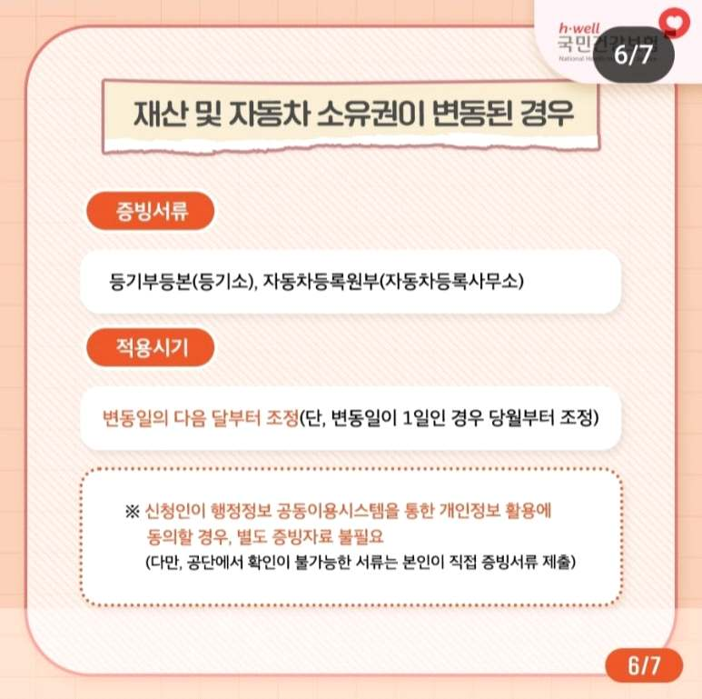 - 소득금액이나 재산세 과세표준 변동이 있는 세대만 보험료가 변동