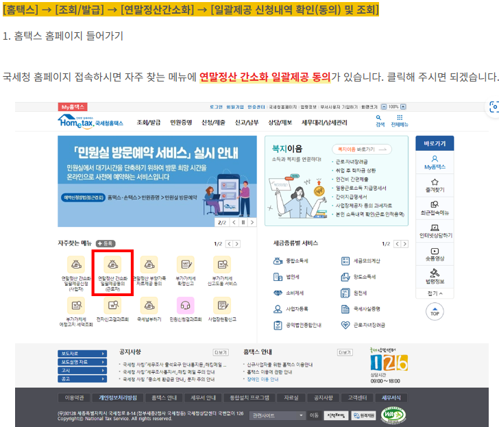 ▶ 이용 방법 : 국세청 홈택스(PC)를 통한 연말정산 미리 보기 서비스 이용