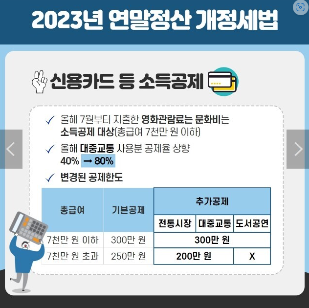 ▷ 교육비 소득공제 : 올해 7월부터 지출한 영화관람료 및 문화비는 소득공제 대상