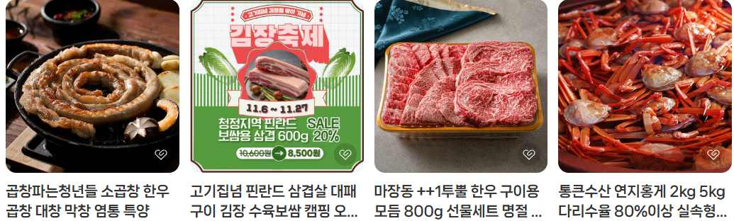 - 신선 먹거리 대표상품 최대 50% 할인, 인기 브랜드 먹거리, 생필품 1+1도 준비