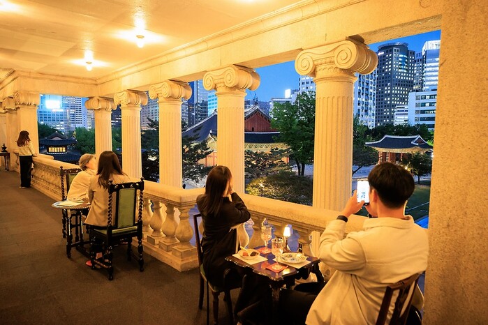 덕수궁 야간 개장에서는 밤의 석조전이라는 프로그램을 진행하는데요. 약 90분간 석조전의 테라스에서 고종이 즐기던 가베라고 불리던 커피와 디저트를 음미하고, 창작뮤지컬인 손탁호텔의 공연을 감상할 수 있도록 되어 있습니다.