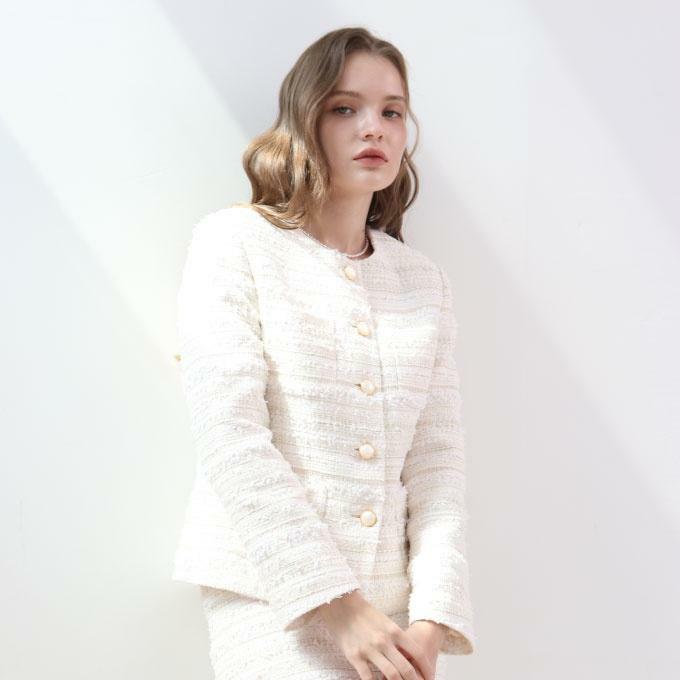 깔끔한 디자인의 칼라리스 트위드 재킷은 다양한 스타일링이 가능합니다. MIXXO에서 판매하는 그레이스 트위드 재킷은 우아한 느낌을 줍니다.