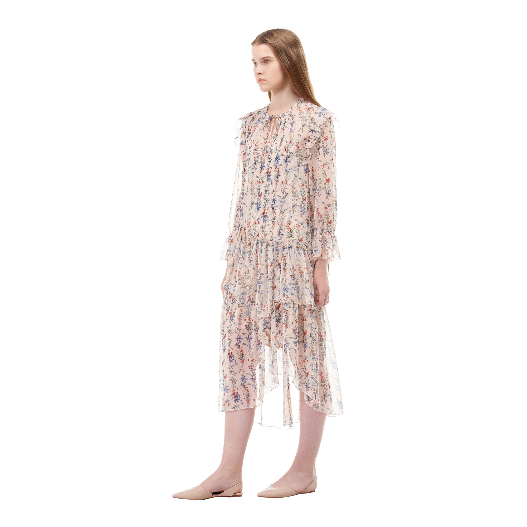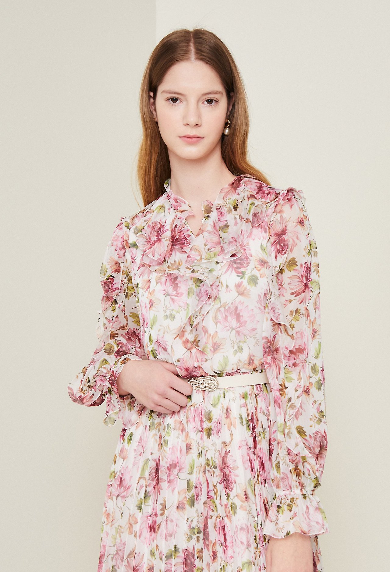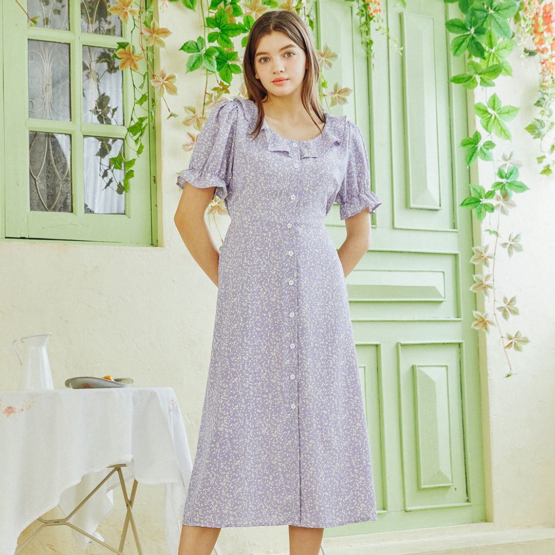 2. 러플넥 플로럴 플리츠 원피스