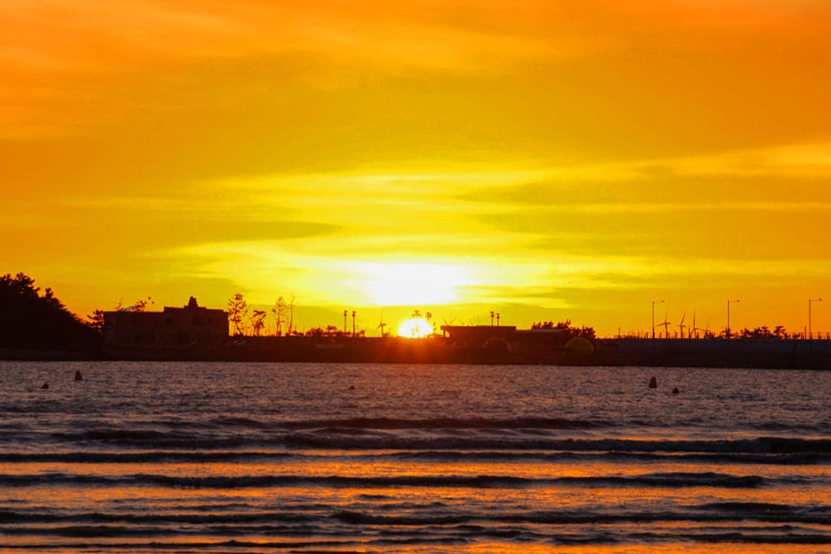 넓게 펼쳐진 해변 뒤로 떠오르는 해가 장엄하게 느껴지며, 해변가를 따라 여유롭게 산책하며 일출을 감상할 수 있습니다. 새해 첫날 소중한 사람과 함께 걷기에 좋은 곳입니다.