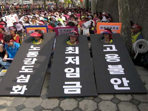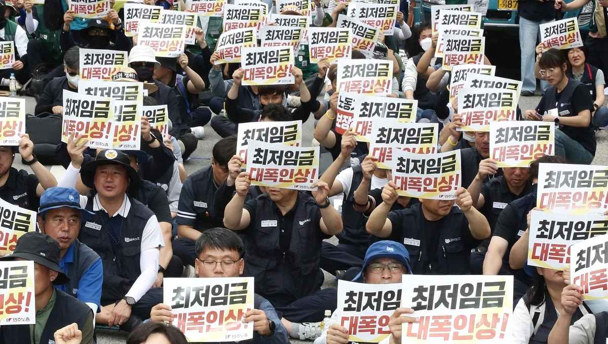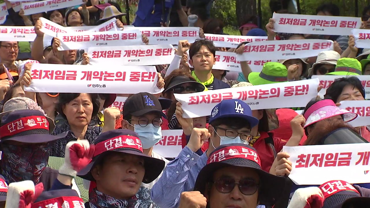 노동계의 반발 민주노총은 1만 1,500원(14.7%)을 요구했지만 받아들여지지 않아 회의장을 퇴장했고, "저임금 노동자의 생계비를 외면한 결정"이라며 강하게 반발했습니다.