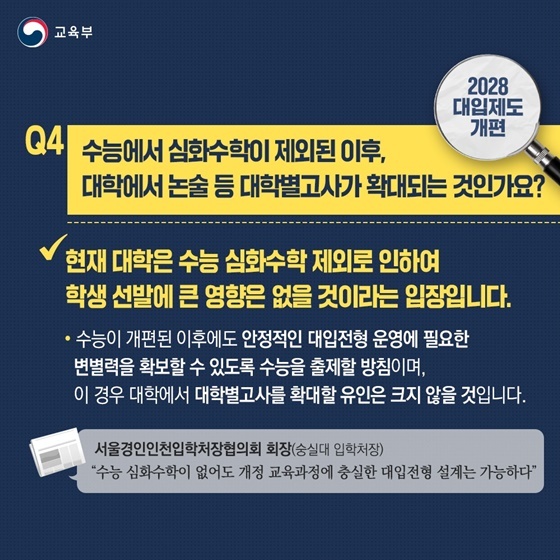 [Q4] 수능에서 심화수학이 제외된 이후, 대학에서 논술 등 대학별 고사가 확대되는 것인가요?