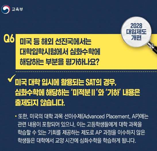 [Q6] 미국 등 해외 선진국에서는 대학 입학시험에서 심화 수학에 해당하는 부분을 평가하나요?