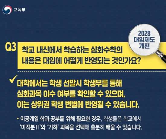 [Q3] 학교 내신에서 학습하는 심화 수학의 내용은 대입에 어떻게 반영되는 것인가요?