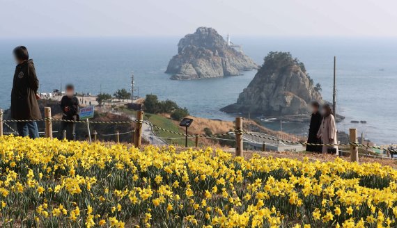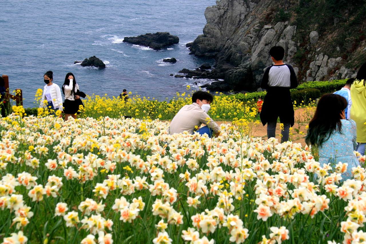 3월과 4월, 봄철 오륙도 해맞이공원은 노란 수선화로 가득 찹니다. 들판 위 가득한 노란빛의 수선화 뒤로 보이는 새파란 바다와 하늘의 조화는 한 폭의 그림이나 다름없죠. 산책로는 이기대 자연마당까지 이어져 있어 여유롭게 산책을 즐기기에도 좋습니다.