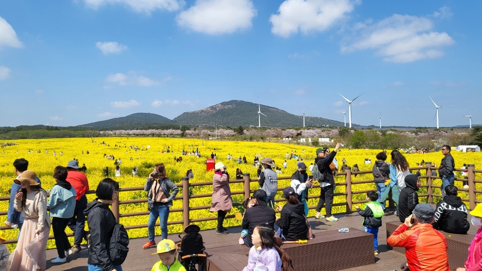 인근 유채꽃 광장에서는 2024년 3월 30일부터 31일까지 유채꽃 축제가 개최됩니다. 드넓은 벌판을 가득 채운 샛노란 유채꽃과 풍력발전기가 그림 같은 풍경을 자아냅니다.