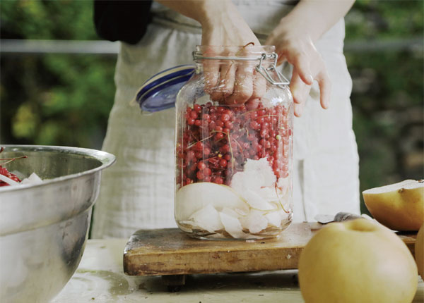생강 시럽을 만들 때 월계수 잎, 시나몬 스틱, 후추 등 향료를 함께 넣었다고 설명합니다. 탁자 위에 놓인 사과칩을 씹으니 새콤달콤하면서 졸깃합니다.