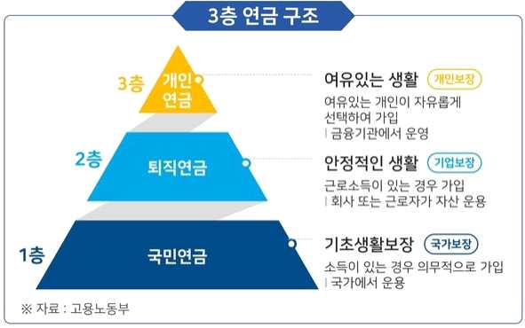 오늘은 본격적인 연금 이야기를 시작하며 우리나라의 3층 연금 체계를 그림으로 보여드리고, 1층부터 차례차례 소개해 드리겠습니다.