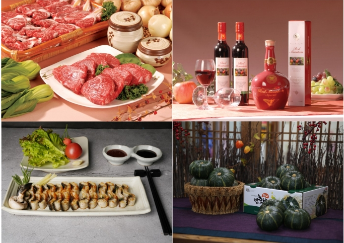 함평군, 청정자연 지역 특산물 4선 소개(시계방향으로. 함평천지한우, 레드마운틴, 함평미니단호박, 함평민물장어)