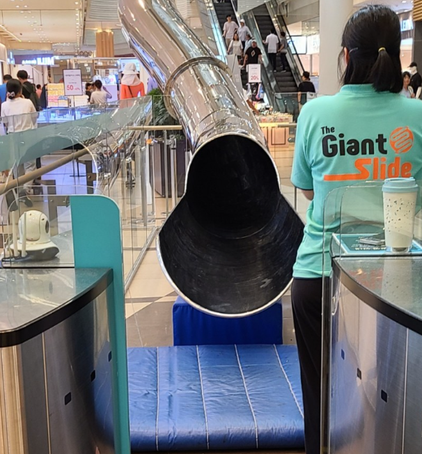 쇼핑몰 방문객은 모두 무료로 자이언트 슬라이드를 경험할 수 있는데, 키 120cm 미만의 어린이와 노약자는 안전상의 문제로 탑승이 제한됩니다.