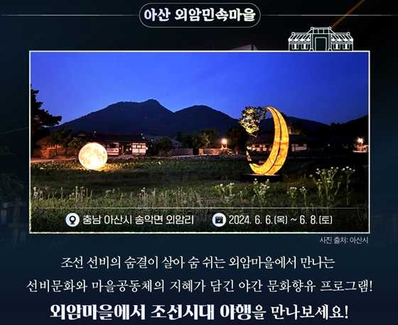'2021년 한국 관광 100선'에 선정된 외암마을을 중심으로, 품격 있는 선비문화와 마을공동체의 지혜가 담긴 야간 문화 향유 프로그램입니다.