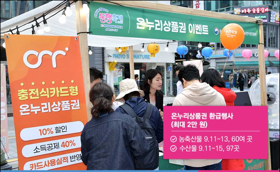 주요 민간 온라인 쇼핑몰 및 정부·지자체 운영 공공쇼핑몰 총 70여 곳과 T·라이브 커머스 등에서 할인쿠폰 발행(최대 50% 할인), 타임 특가, 특별할인전 등을 진행합니다.