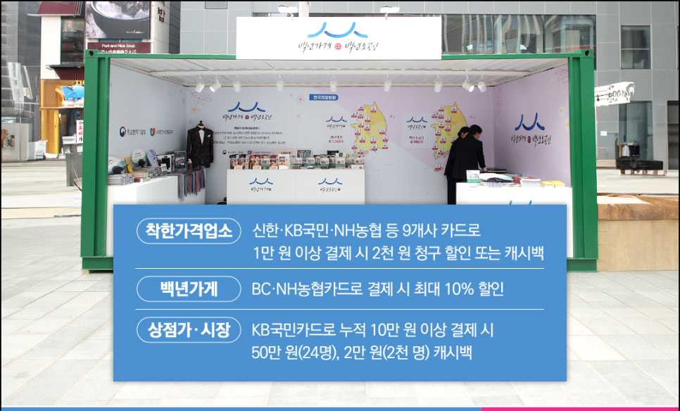 * 착한 가격 업소 : 신한・KB국민・NH농협 등 9개 사 카드로 1만 원 이상 결제 시, 2천 원 청구 할인 또는 캐시백