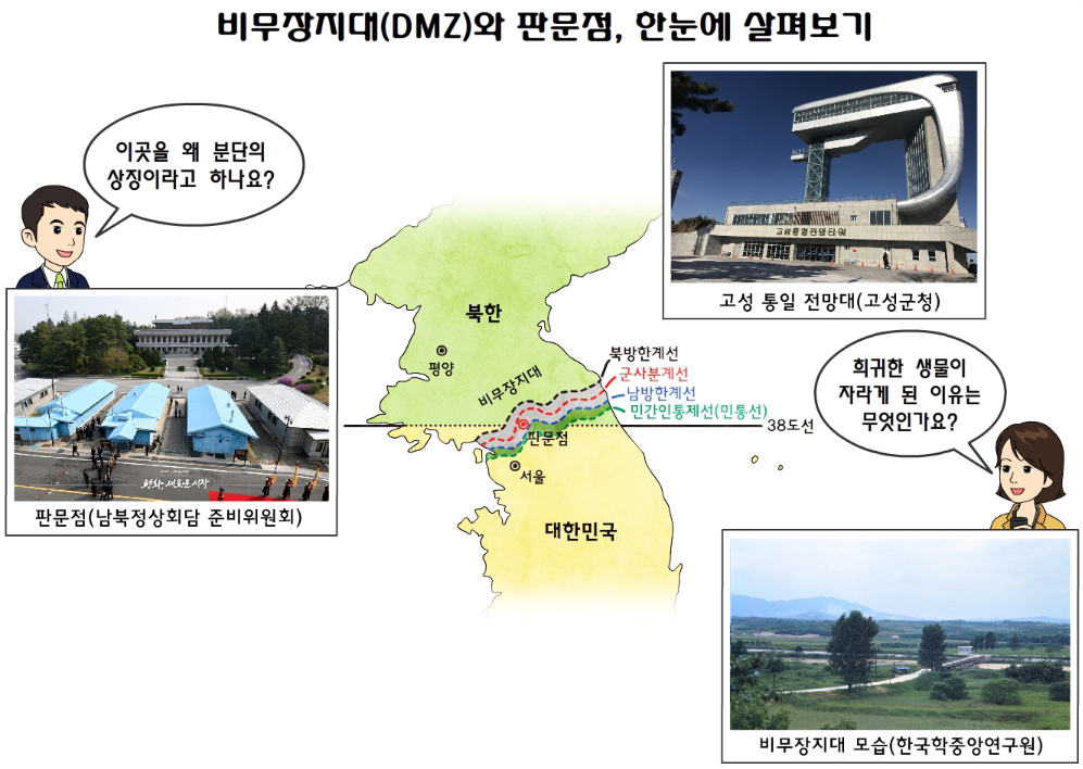 DMZ는 한반도의 동서를 잇는 국토 생태네트워크의 핵심 벨트로 분단 이후, 50여 년간 민간인의 접근이 통제ㆍ제한되어 왔기 때문에, 그 어느 지역에서도 찾아볼 수 없는 독특한 자연생태계를 형성하고 있습니다.