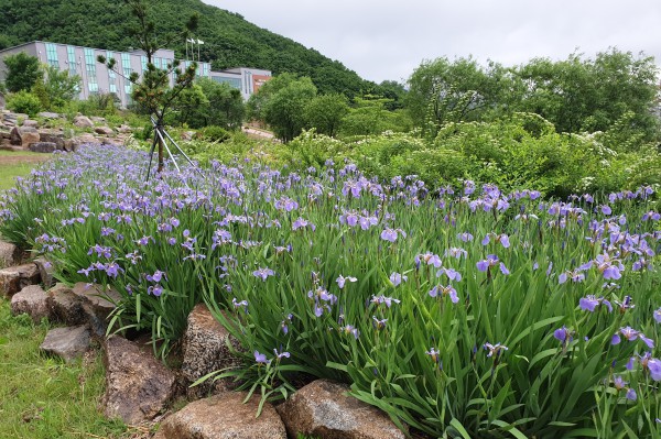 야생화 동산에서 피고 지는 우리 꽃들이 DMZ 자생식물원 둘레의 숲들과 조화로이 어우러져 이질적인 전시 공간이 아닌, 주변 경관과 하나 된 전시원의 모습을 보여줍니다.