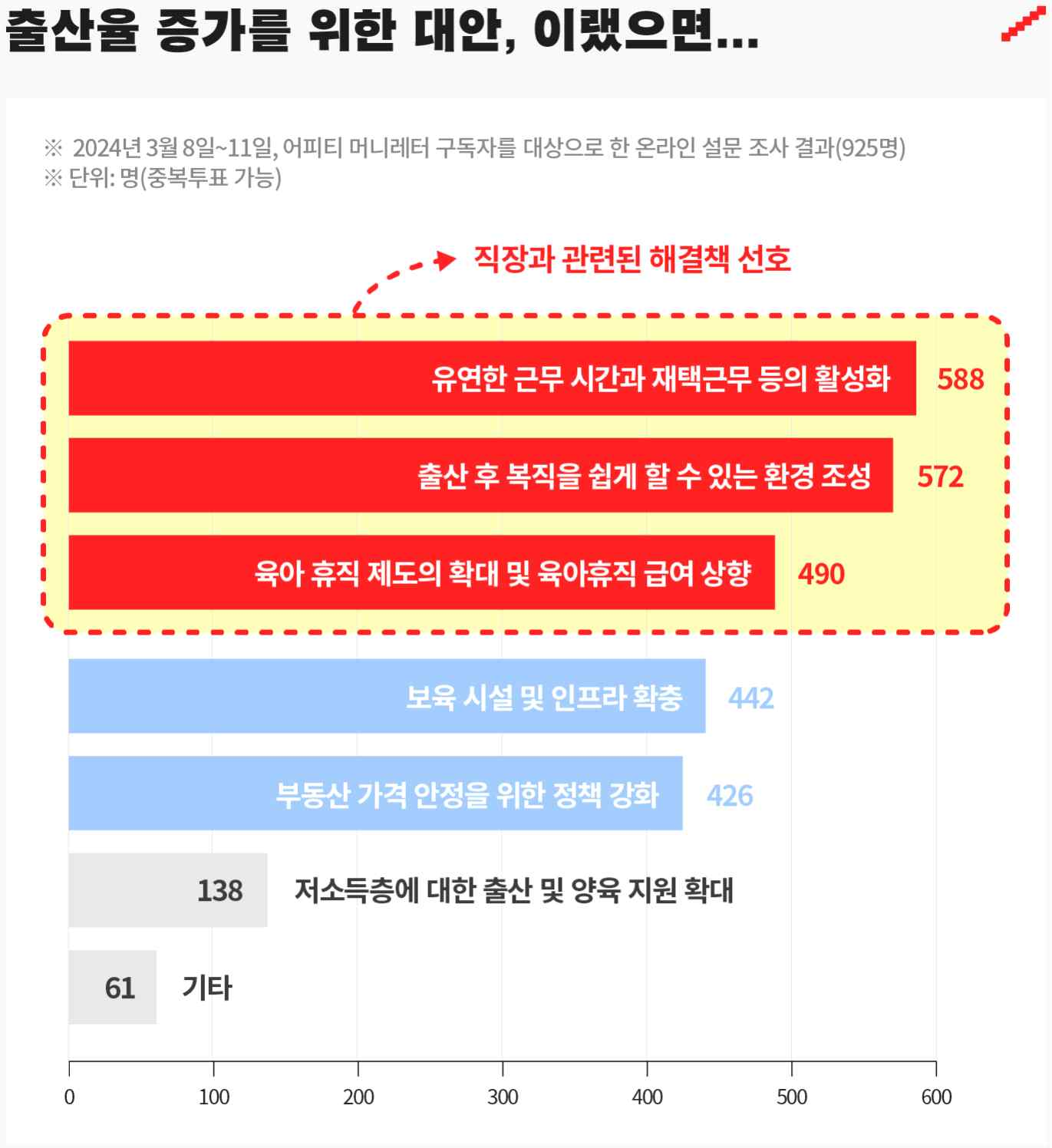* 3위가 '육아 휴직 제도의 확대 및 육아 휴직 급여 상향'