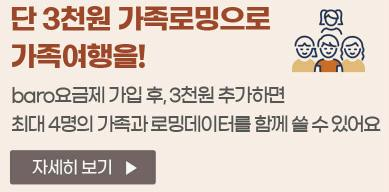 SK텔레콤(www.sktelecom.com)은 오는 29일부터 12월 28일까지 6개월간 가족이 함께 여행을 갈 경우, 한 명만 로밍 상품인 'baro(바로) 요금제'에 가입하면, 온 가족이 함께 데이터를 이용하는 '가족로밍 프로모션'을 시행한다고 밝혔다.