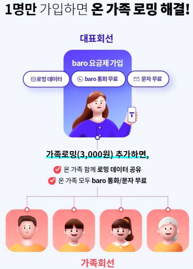 1. 1명만 baro 요금제 쓰면, 온 가족이 데이터 나눠 쓰고 baro통화∙문자도 무료
