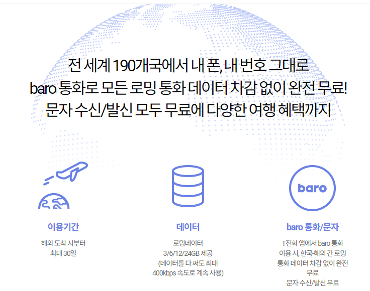 ■ 해외여행 필수품 T로밍 baro 요금제 안내